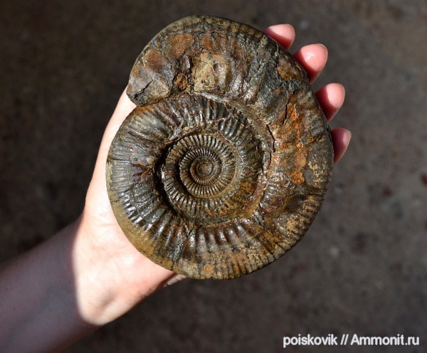 Отличный аммонит! Если средняя юра, то это кто-то из Perisphinctidae, наверно Proplanulites. | ||||||