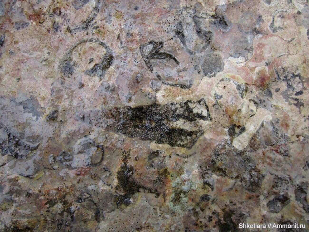 Длина раковины около 7 см. Гора Фишт, Северное плато. Хорошо сохранился только последний оборот, но он очень характерный для рода Ptygmatis, как и хорошо видимый пупок. Две буквы в верхней части снимка являются полностью природным творением. Больше того, я даже не заметил их, когда фотографировал, и только при обработке фото увидел, как Фишт надо мной пошутил.