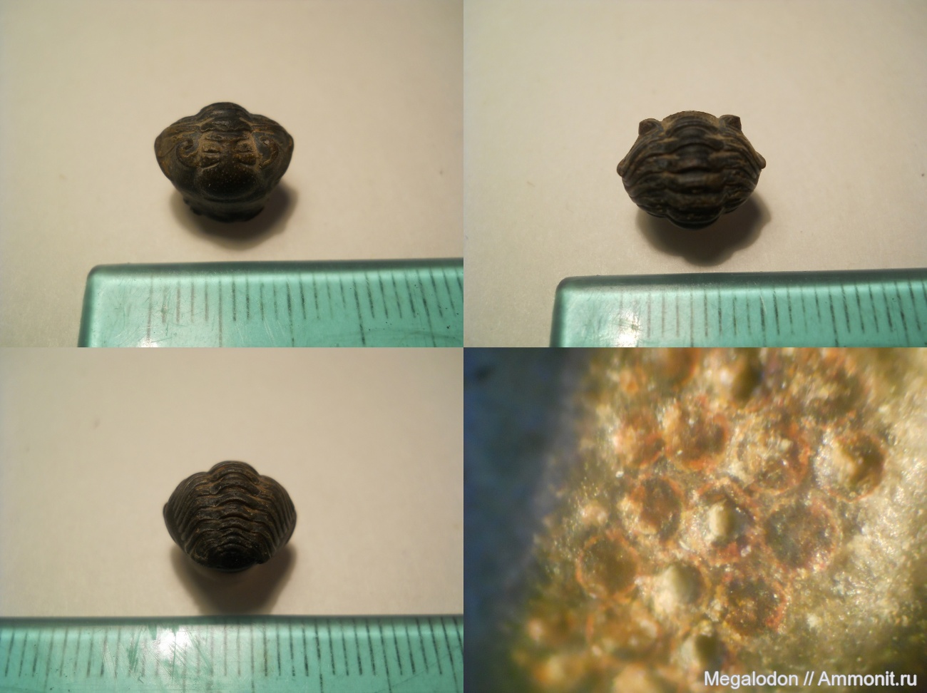 Небольшой, но довольно интересный трилобит. Получен от Сергея (nyxx). На фото в нижнем правом углу- строение глазной поверхности.
