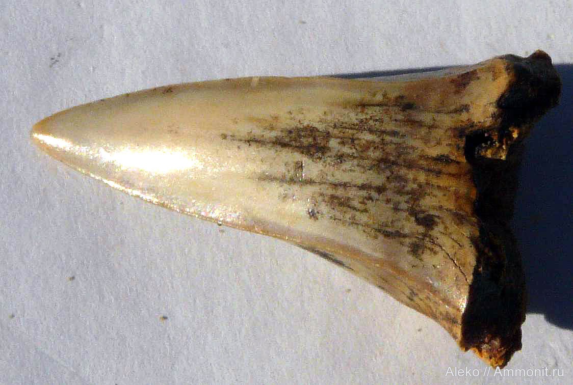 зуб ?Cretodus crassidens - вид этого зуба с лабиальной стороны.