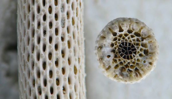 Спасибо! Акантопоры тут хорошо выражены, но и у других встреченных в Гжели Ascopora они часто хорошо заметны бывают. "Трубочка" - глина или др. мусор. | ||||||