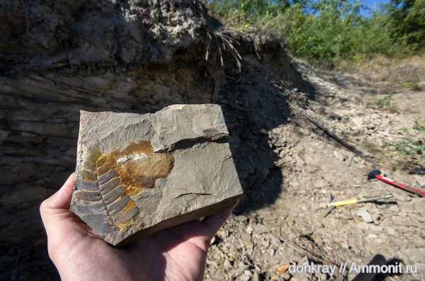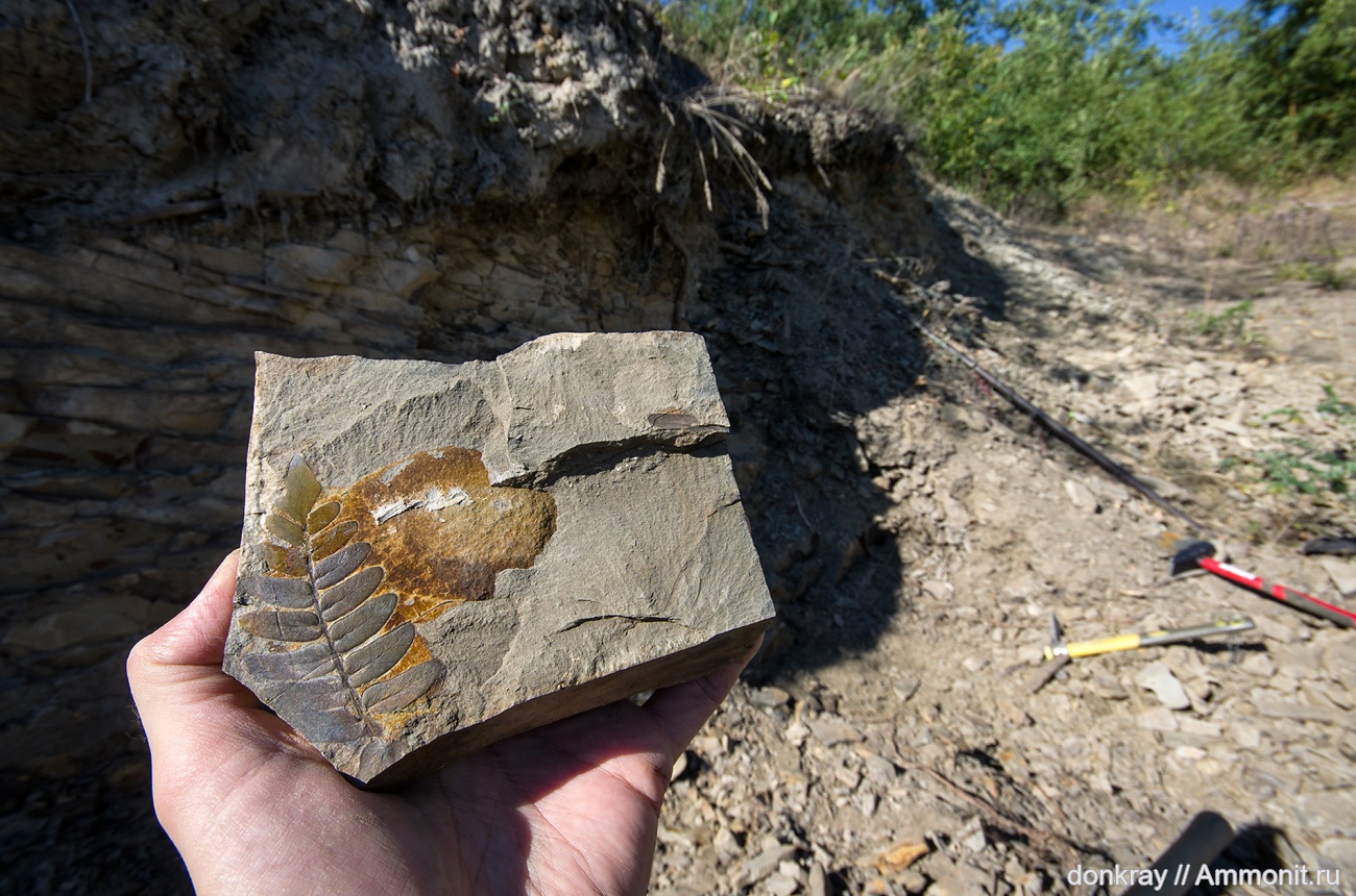 Теперь могу похвастаться отличными отпечатками веточек с листиками Неироптериса, которые по сохранности посоперничают с находками из "лесной" балки уважаемого Дмитрия Шапошникова :)