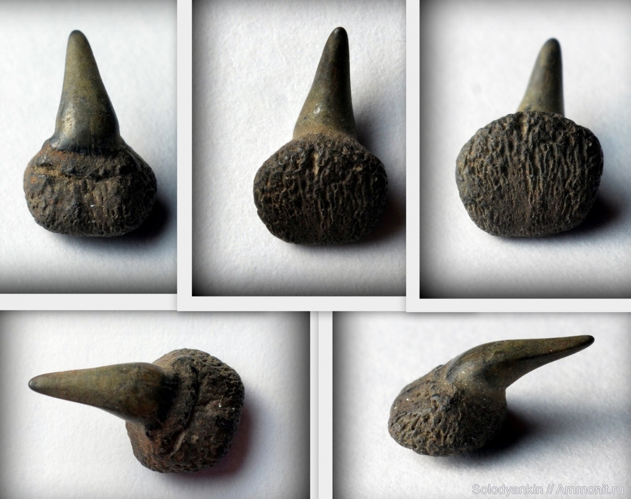 Удалось отмыть небольшой загнутый зубец. Впервые встретился образец такой формы и с таким необычным корнем.