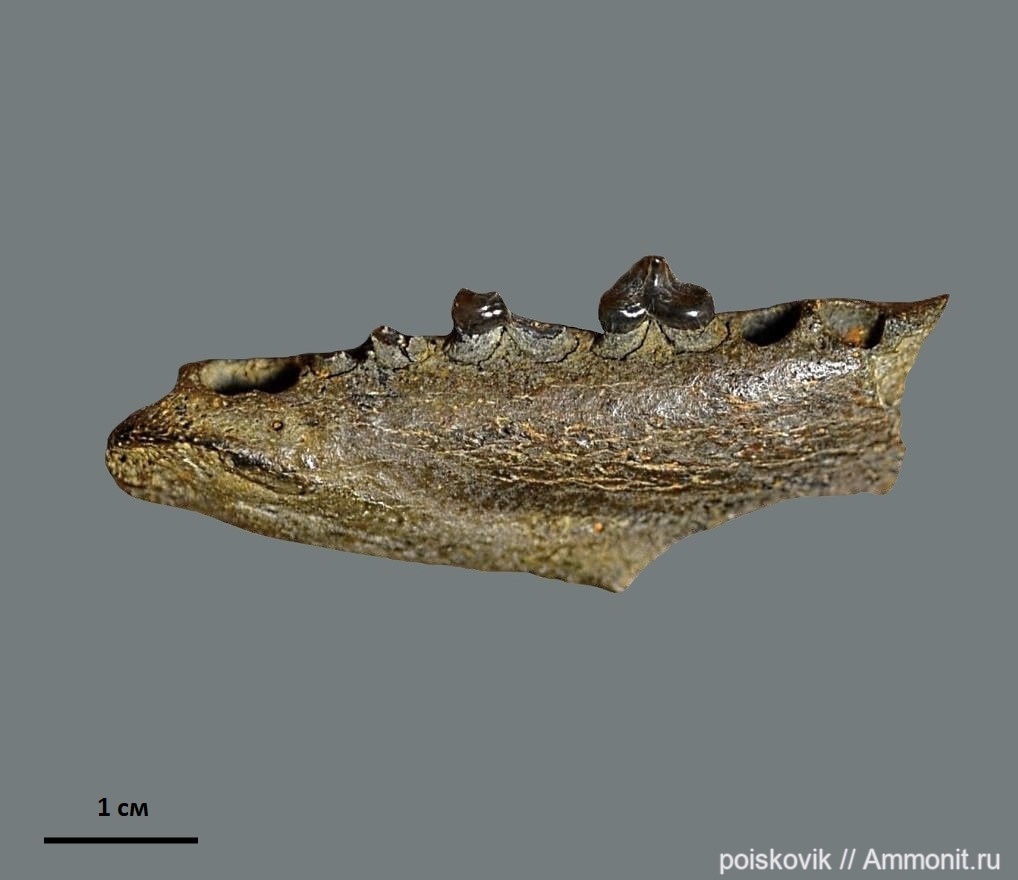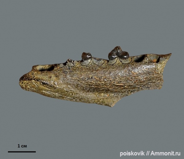 Фрагмент нижней челюсти тюленя с частично сохраненными зубами. Найден в глинистых породах в окрестностях Керчи