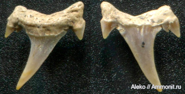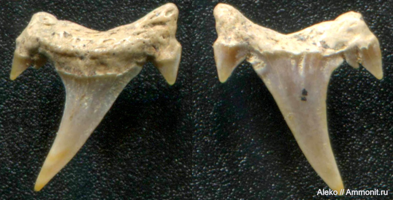 Еще один не совсем обычный боковой зуб Eostriatolamia subulata - с раздвоенным боковым зубцом.