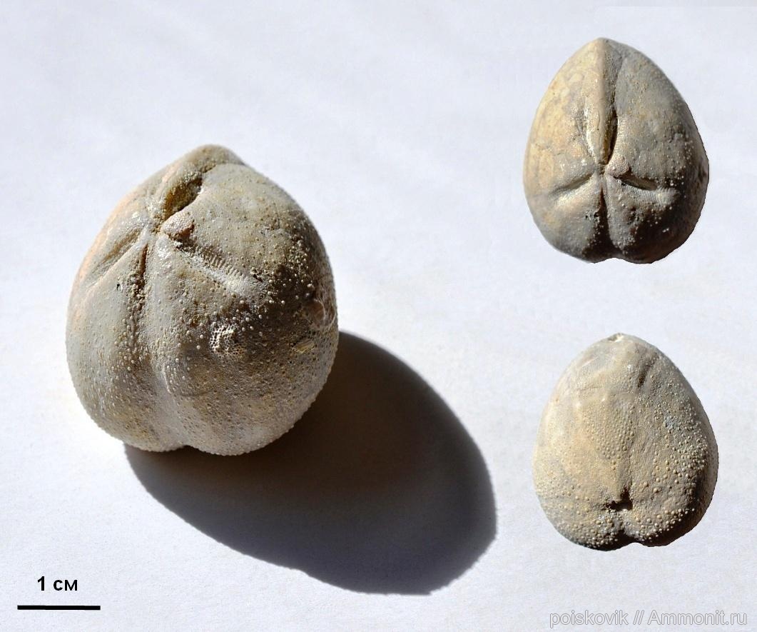 Хорошо сохранившийся морской еж размерами: 3,5см Х 3,3см Х 2,7см из меловых обнажений в районе села Мичуринское