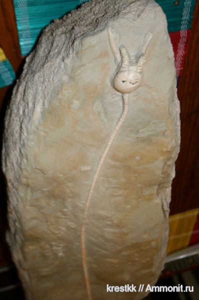 У Вас какие-то фантастические темпы препарации! Я свидетель, за 6 часов до публикации снимка мы ехали в машине, образец лежал рядом, и больше половины длины стебля было вообще не видно, скрыто в породе. | ||||||