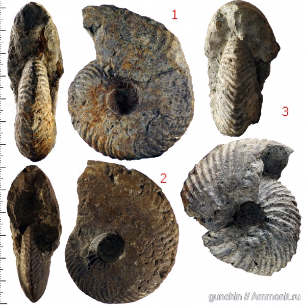 1 и 2 точно Quenstedtoceras, 3 либо тоже из них, либо может быть Longaeviceras из того же слоя, очень уж у него ребра на киле высокие. | ||||||