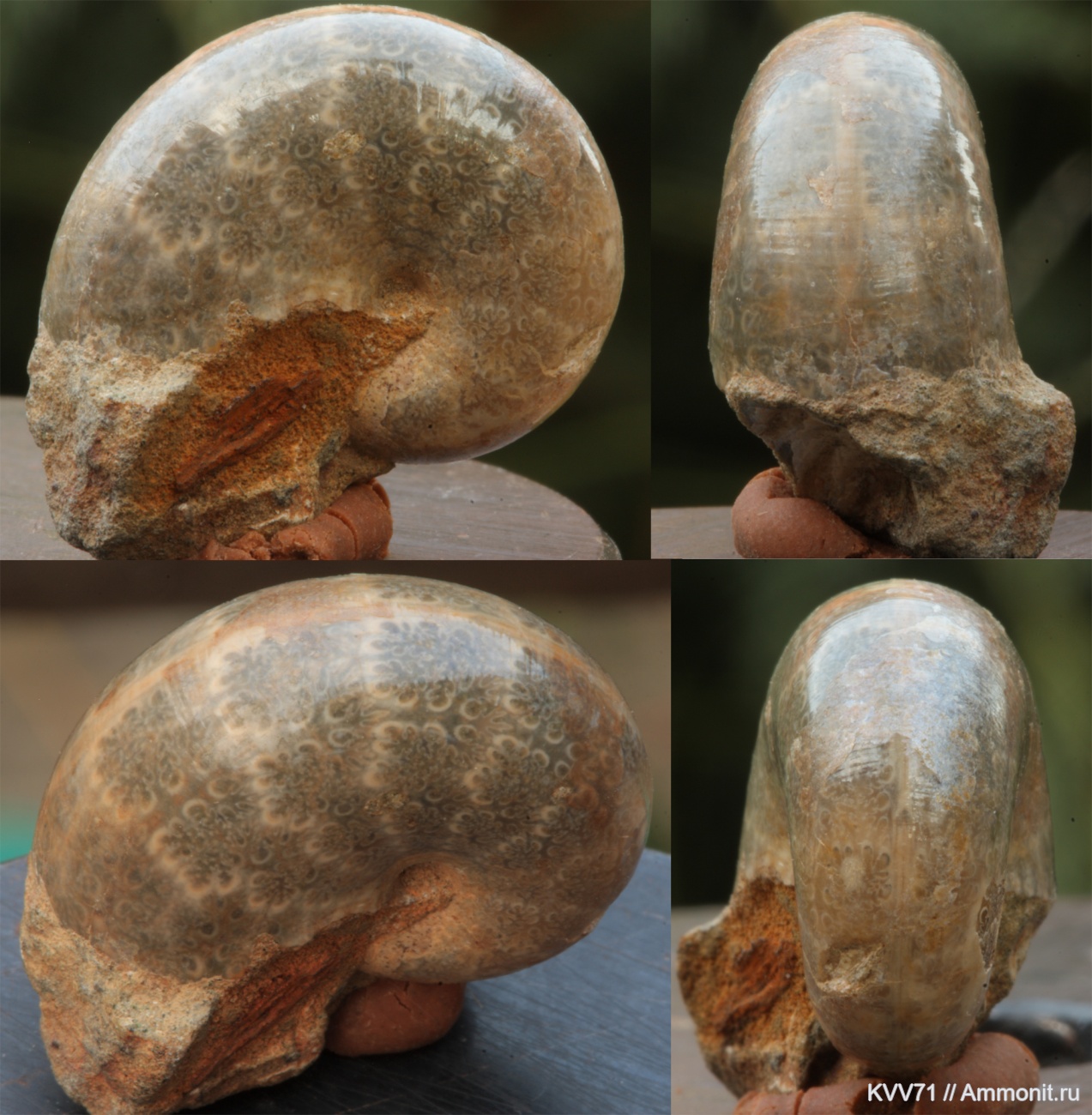 Показался при первом взгляде вообще наутилусом!Временные устья как перегородки у наутилусов.При близжайшем рассмотрении увиделись лопстные лини.А Вы раковину сточили,и фрагмокон заполировали?Очень симпатично вышло. | ||||||