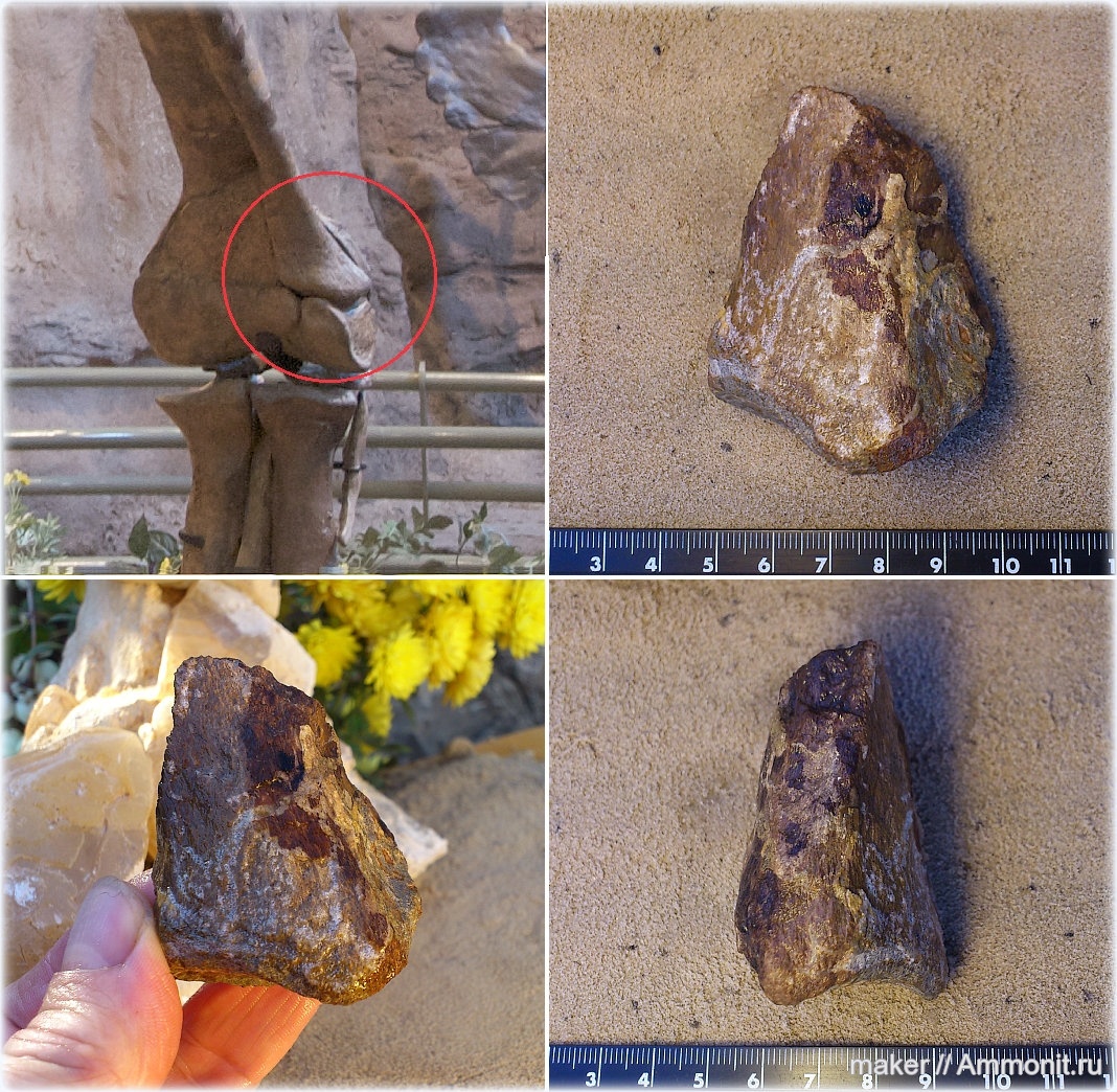 Дополняю фрагменты голеностопа М. зверя. Эпифиз фибуля. По нашему - один из концов малой берцовой кости. В самом деле малая, по сравнению с большой берцовой. Вчера смотрел у курицы... Понимаю, что образец далек от совершенства. Но для меня он важен как еще одна веха в определении М. зверя. Ну и как повелось, за эталон сравнения принята стопа Тираннозавра. Правда есть некоторые отличия. У тираннозавра на просмотренных мною фото нижний эпифиз не имел суставной впадины, в отличие от M. зверя. Я просмотрел так же множестко вариантов этого участка фибули разных животных. Смешно, но больше всего совпадений с данным фрагментом у человека))).