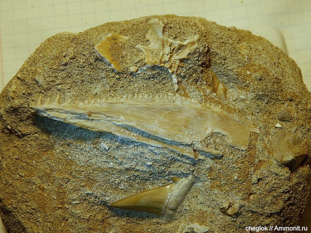Приобрёл марокканский материал. Челюсть и пара бонусов -- зубик и позвонок. С зубиком понятно, отодус обликвус, а вот челюсть чья, энходуса или как? Буду рад услышать авторитетное мнение.