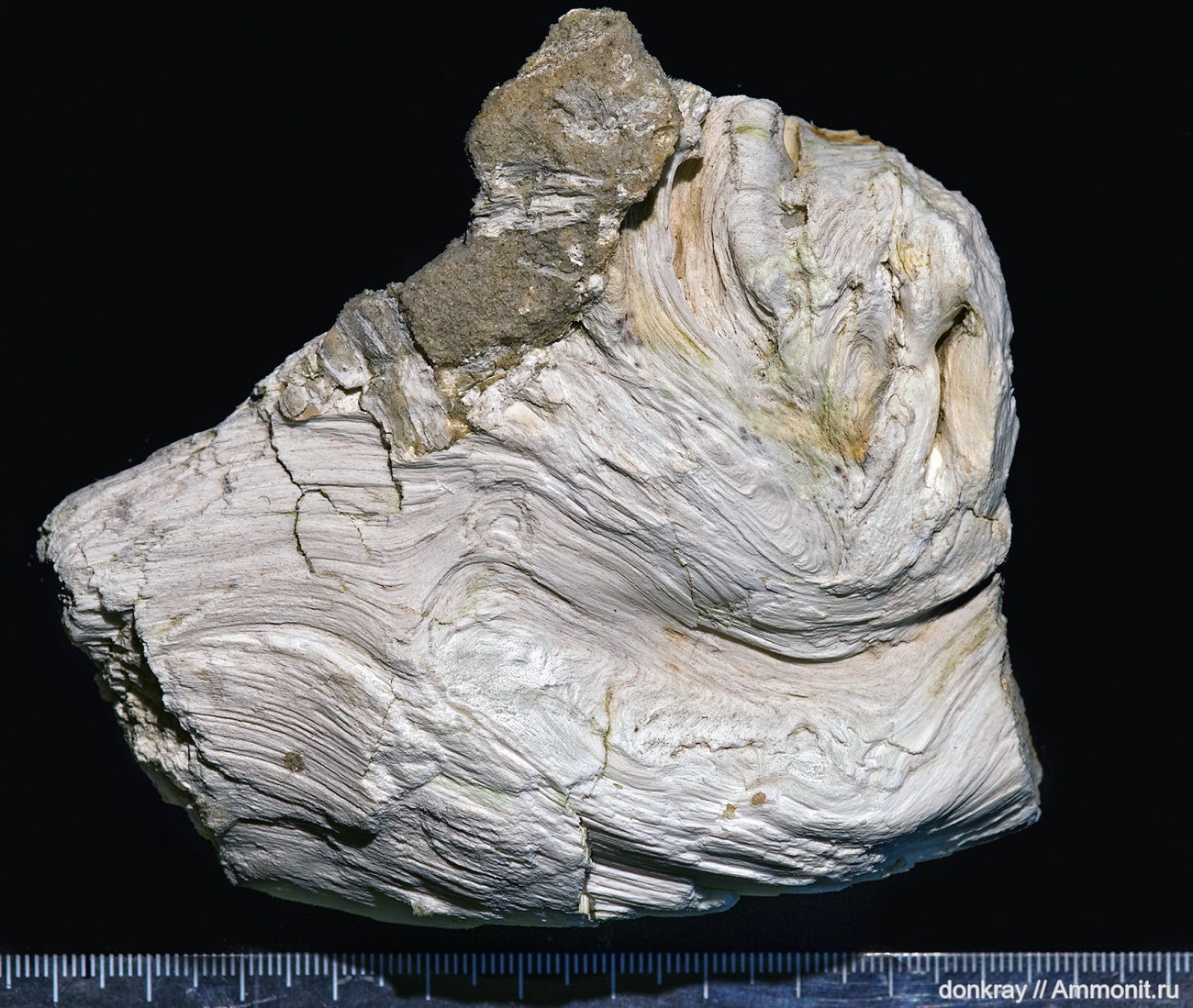 Очень понравился рисунок внутреннего изгиба древесины в кварцитовом песчанике. Найден в одном из кварцитовых карьеров Ростовской области.