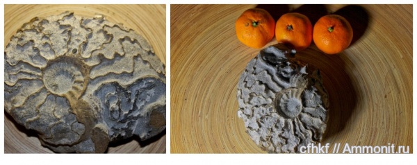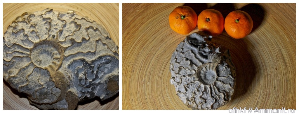 А он и так красив! А каким он был видно на внутренних оборотах. И не погибший он. Очищенный мандарин даже вкуснее смотрится. Так и аммонит демонстрирует свой внутренний мир... | ||||||