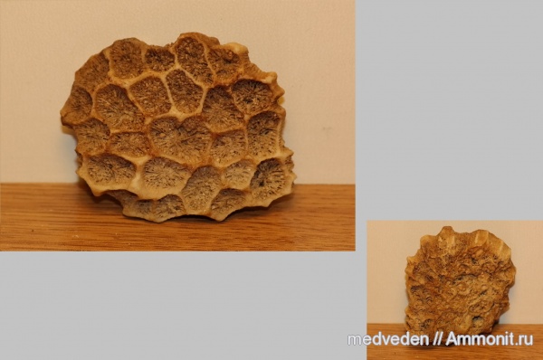 Петалаксис с оплывшими и провалившимися кораллитами,замещённый кремнезёмом.Действительно в этом сильно изменённом образце трудно узнать широко распространённый коралл. | ||||||