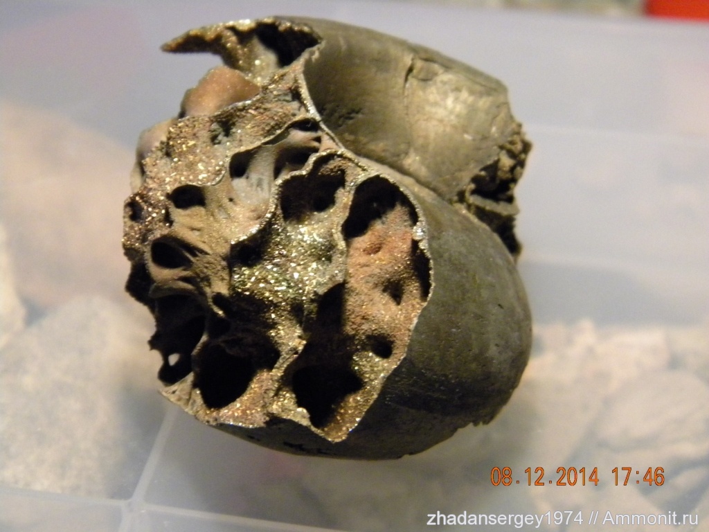 Я такой же фрагмент сифона с пиритом нашёл. Очень красивый!