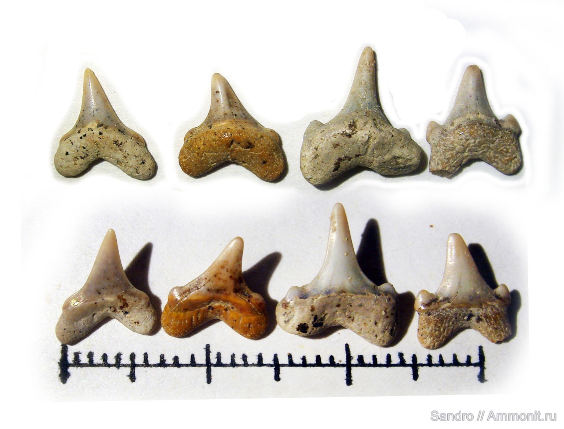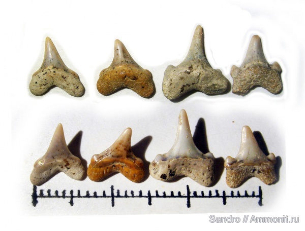 В ходе дальнейшего доразбора последней партии промыва из месторождения Никольское-1 (2010г) попробовал выложить в ряд несколько эквивалентных по размеру похожих зубов с дополнительными зубчиками и без. от самого лысого до самого разделённого.