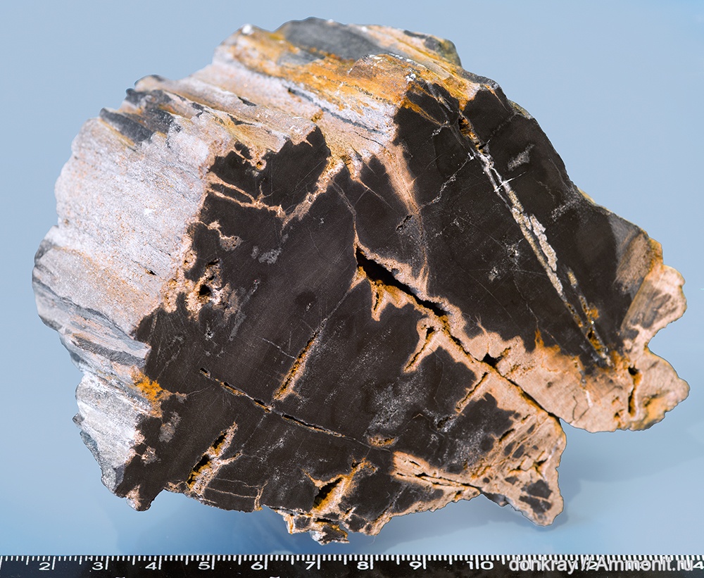 Окаменелое палено было найдено в реке Губс. Внешняя оболочка в кристаллах, см. доп. фото фото. С помощью поперечного среза с шлифовкой проявилось простейшая клеточная структура голосеменного. Посмотрите на доп.фото фото.