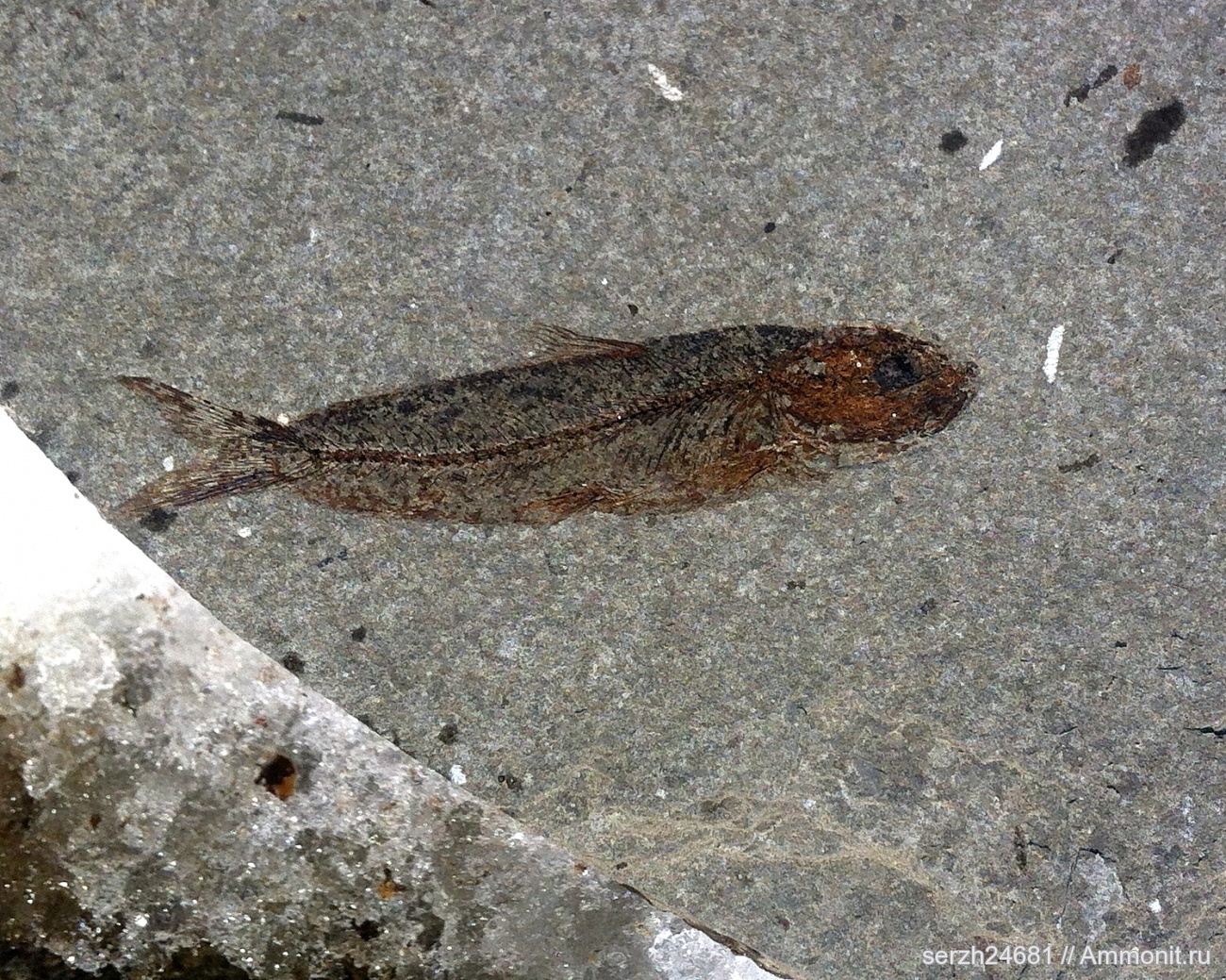 Образец был найден на р.Туха при расколе мергелевой плиты.Длинна рыбки 8см.