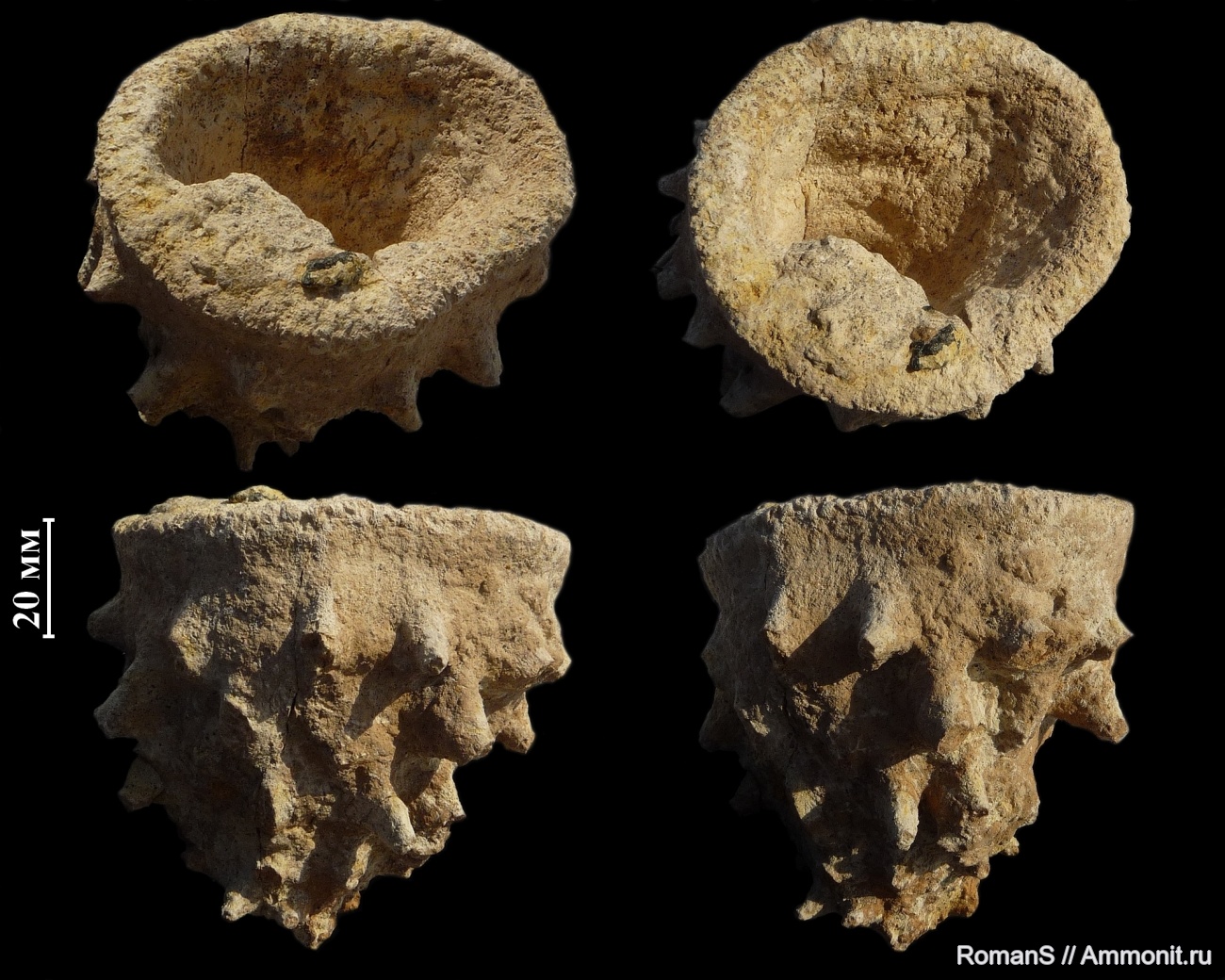 При меньшем кол-ве ризоидов, труднее удерживать равновесие, губки ломались, падали, отращивая новые ризоиды, примеров тому масса: Ventriculites striatus , Ventriculites sp. .При такой фантастической живучести и умении приспосабливаться, видимо это не составляло большой проблемы. Такие Microblastium-ы, как на фото, решили проблему устойчивости, отращивая ризоиды по всей высоте бокала.