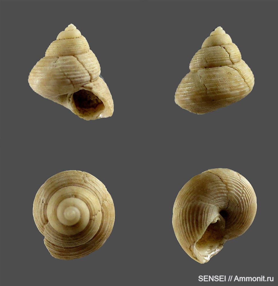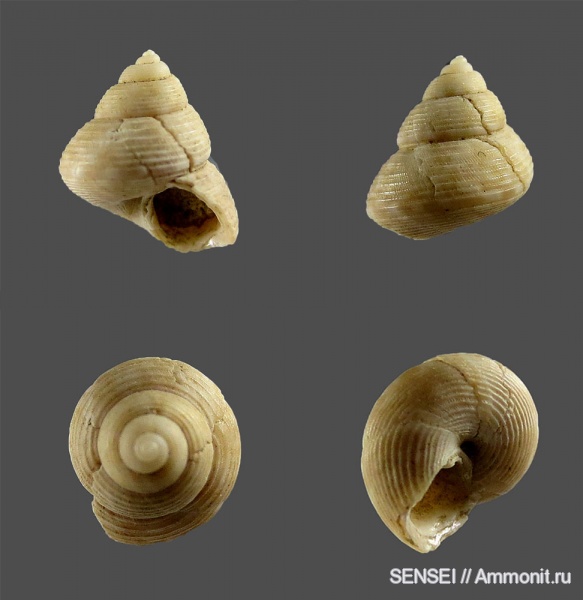 Ещё одна раковина очень хорошей сохранности с сохранившимся протоконхом из полутора гладких оборотов. Хорошо видна сетчатая скульптура,характерная для этих раковин.