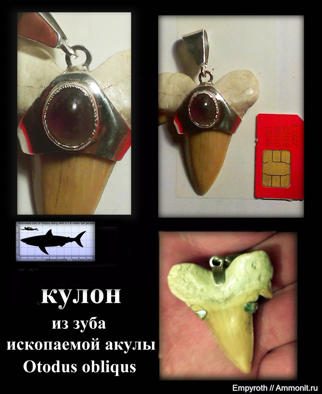 Возраст кулона - 50 000 000 лет (палеогеновый период). Акула называется: Otodus obliqus.