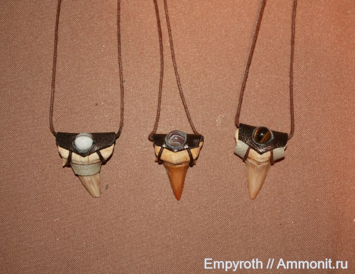 Кулон из зуба ископаемой акулы Otodus obliqus ручной работы