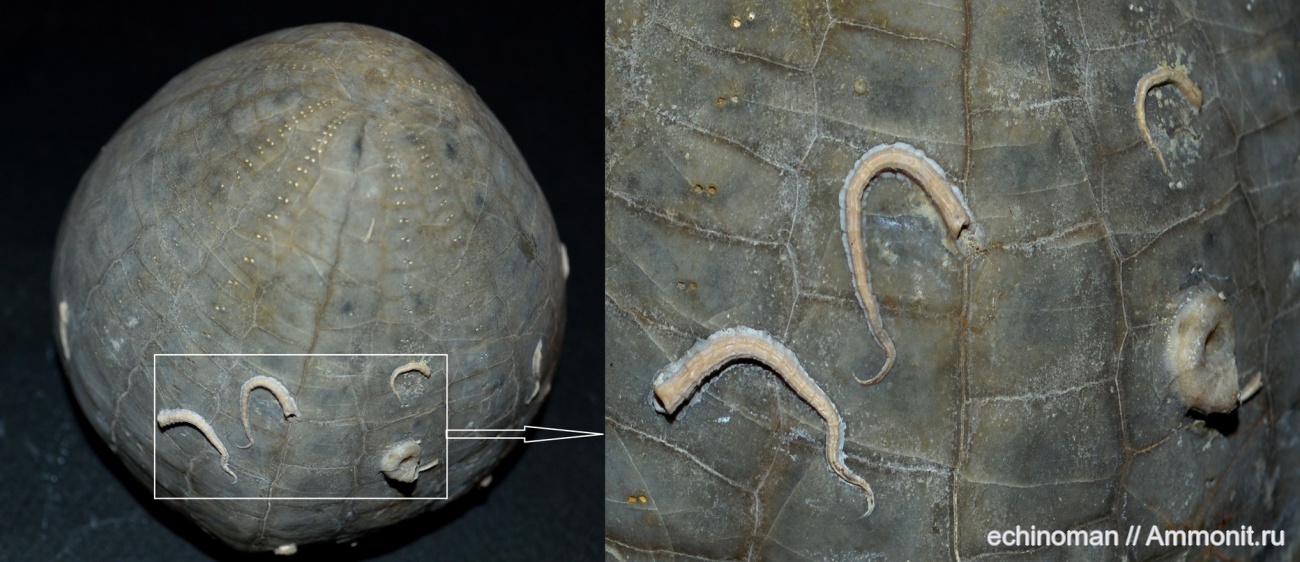 Echinocorys cf. katcharavai+Proliserpula sp.+Cycloserpula sp., палеоцен (датский ярус), Бяла, Бoлгария