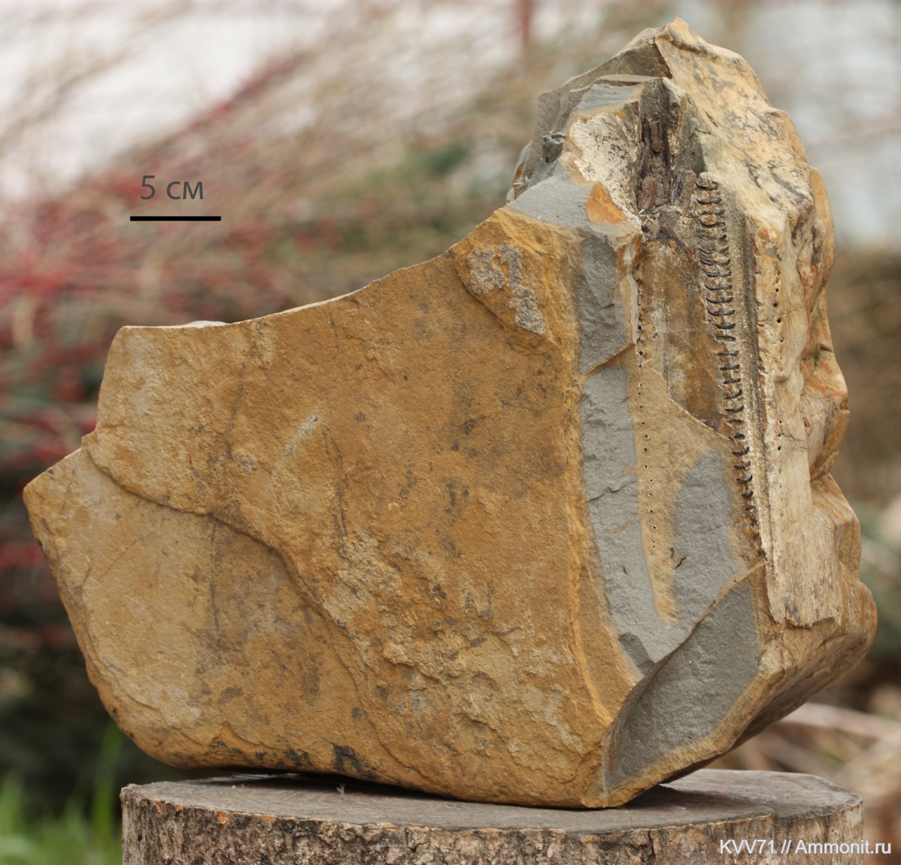 Образец неудобен для фотографирования. Ряды зубов находятся в разных плоскостях. Камень крупный, зубы мелкие.