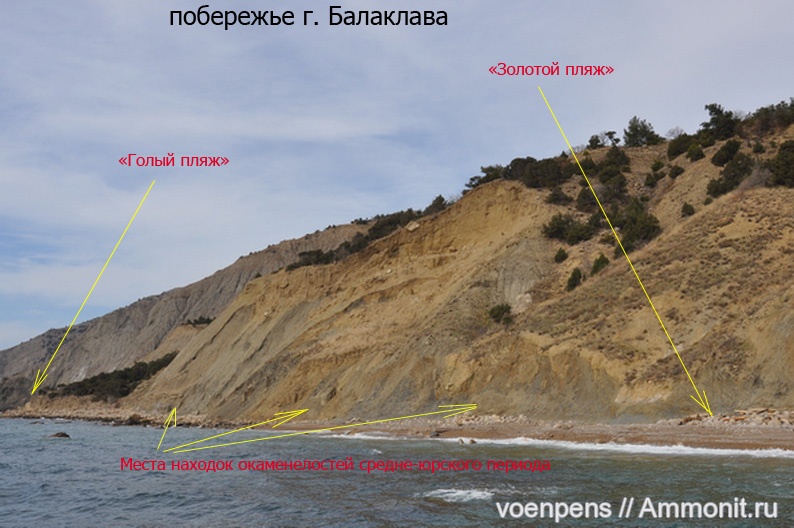 От Генуэзской крепости Балаклавы, по живописной тропе, минут 40 не быстрой походкой. Аммониты, дерево -фото , гагат - фото.