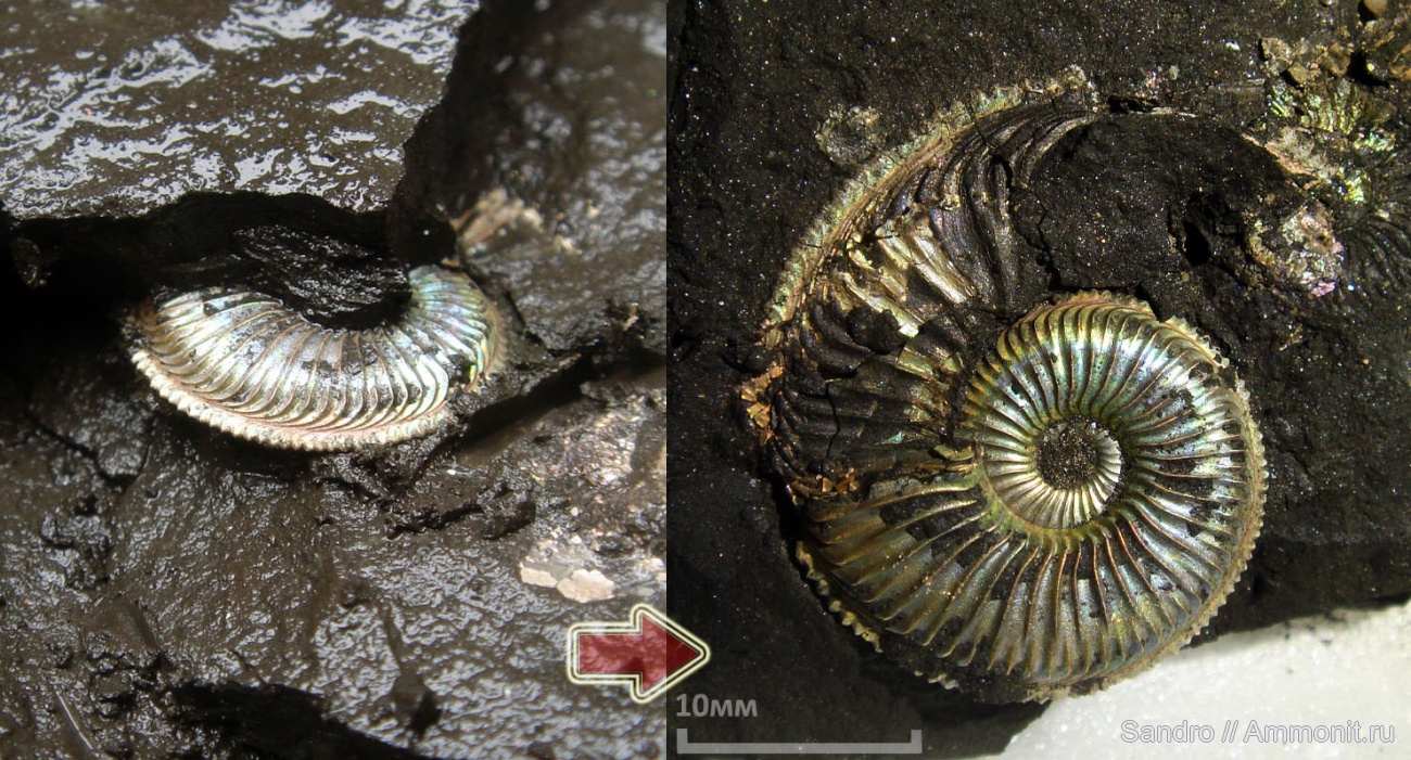 Amoeboceras cf. alternoides на месте находки и после извлечения.