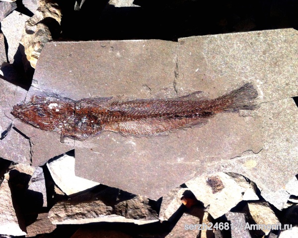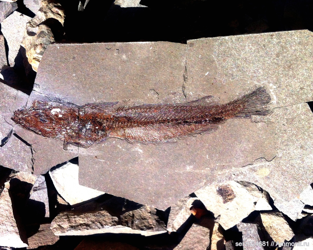 Образец был найден на р.Пшеха при расколе мергелевой плиты.Длинна рыбки 12см.Предположительно может пренадлежать к семейству тресковых.