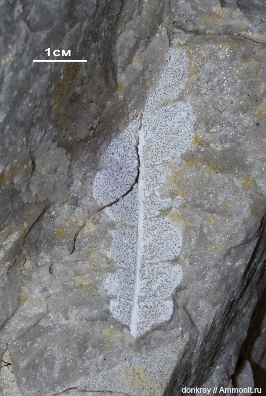 Отпечаток листа в кварците, предположительно листа (пера) папоротникалиста.