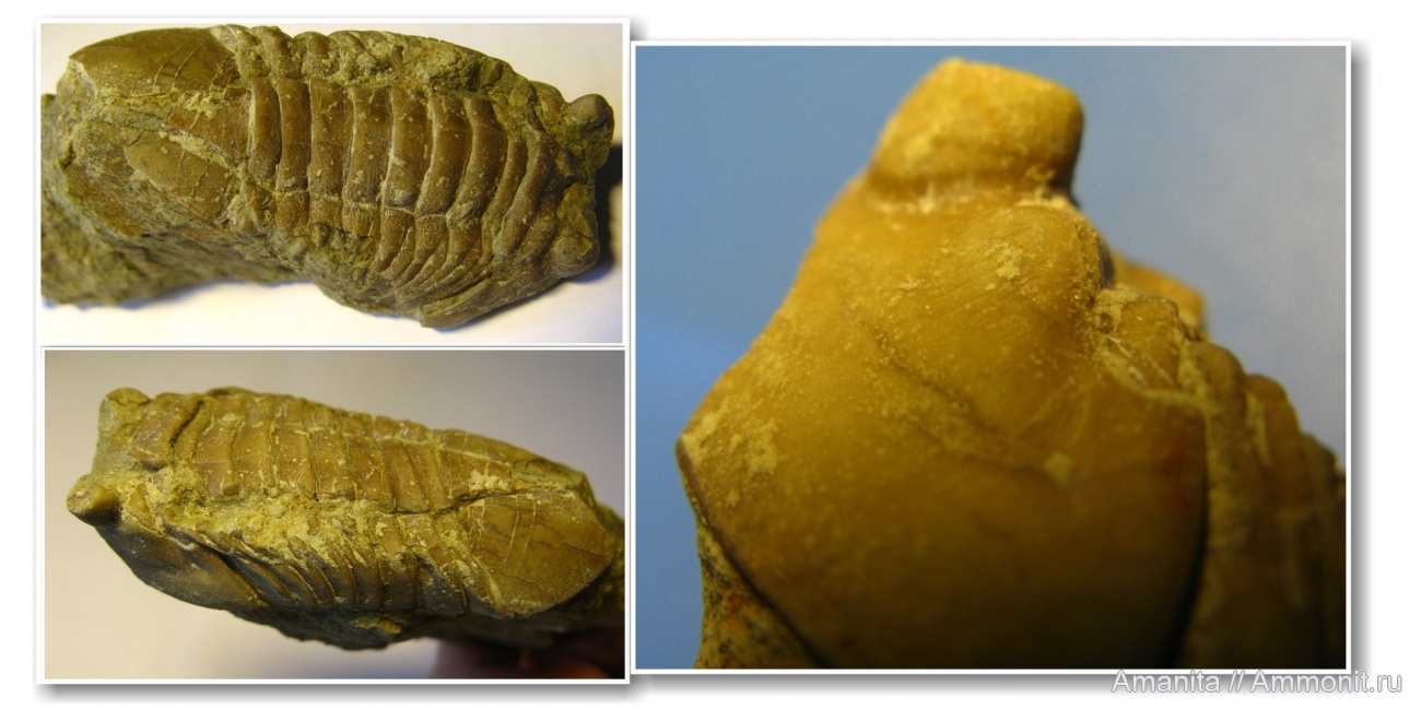 Похоже, это сброшенная и помятая шкурка, не целый трилобит. Интересно, что на образце даже в лупу было не рассмотреть характерные террасовидные складки в глазной области, и только на увеличенном снимке они проявились.