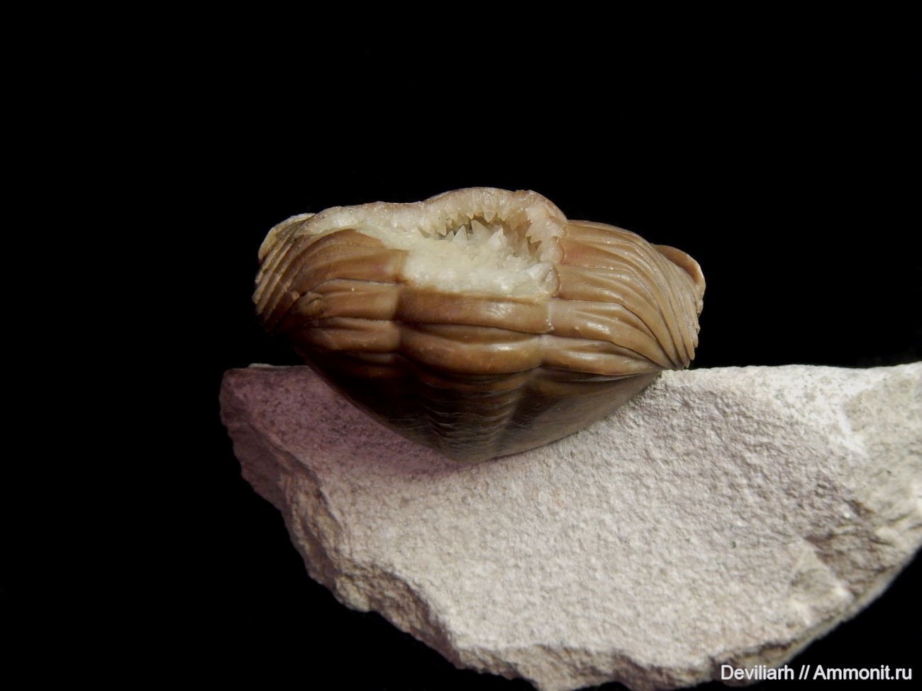 Кристаллами кальцита зарастают пустоты внутри панцирей. С брахиоподами и иглокожими это часто случается, а вот таких трилобитов я не видел. | ||||||