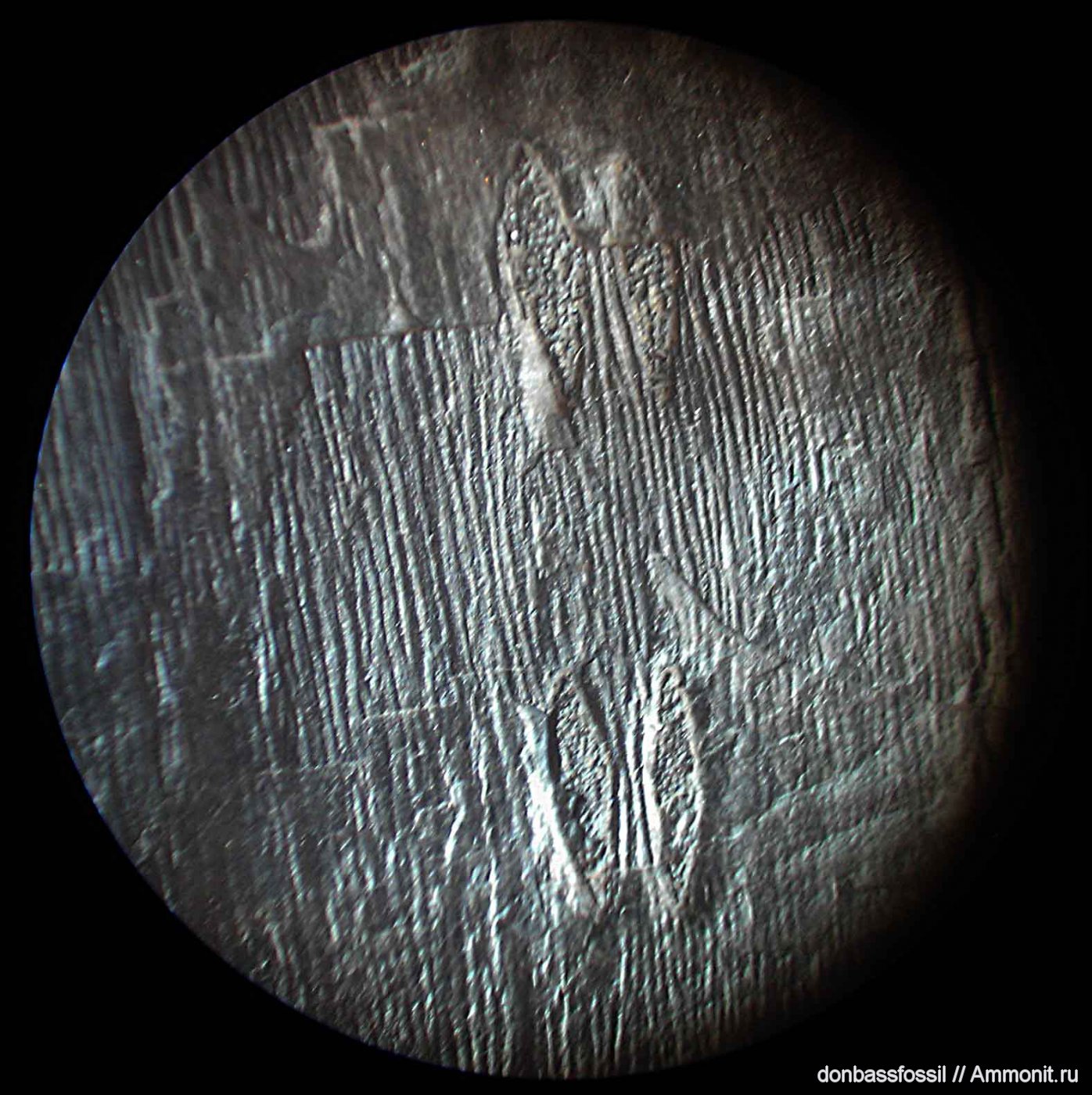 Квадраты - остатки верхних слоев коры. Вытянутые парные эллипсы - остатки листового рубца сигиллярии. | ||||||