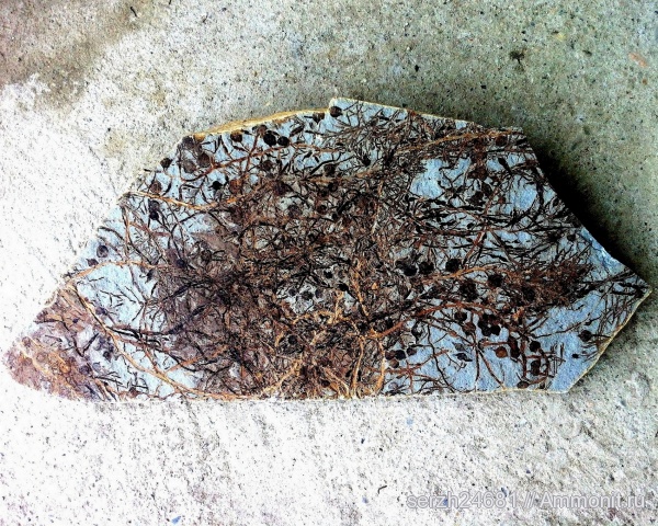 Образец найден на р. Пшеха при расколе мергелевой плиты.Размер 70х30.