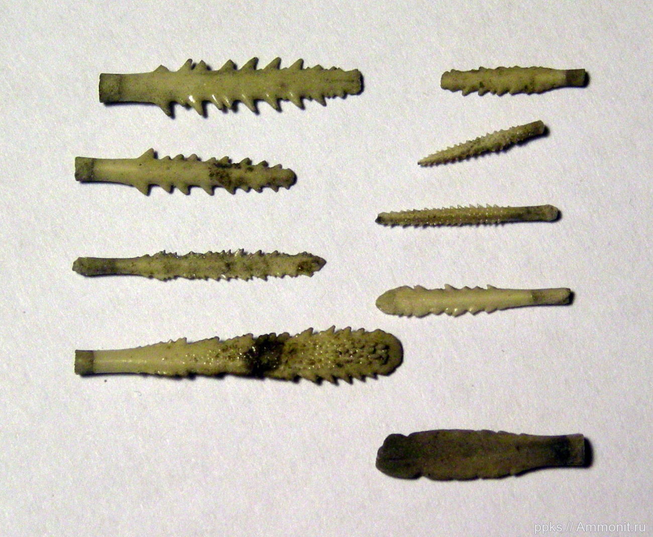 Хорошо сохраняются в глине иглы небольшого размера (до 30 мм) особенно интересно выглядят плоские, похожие на перья.