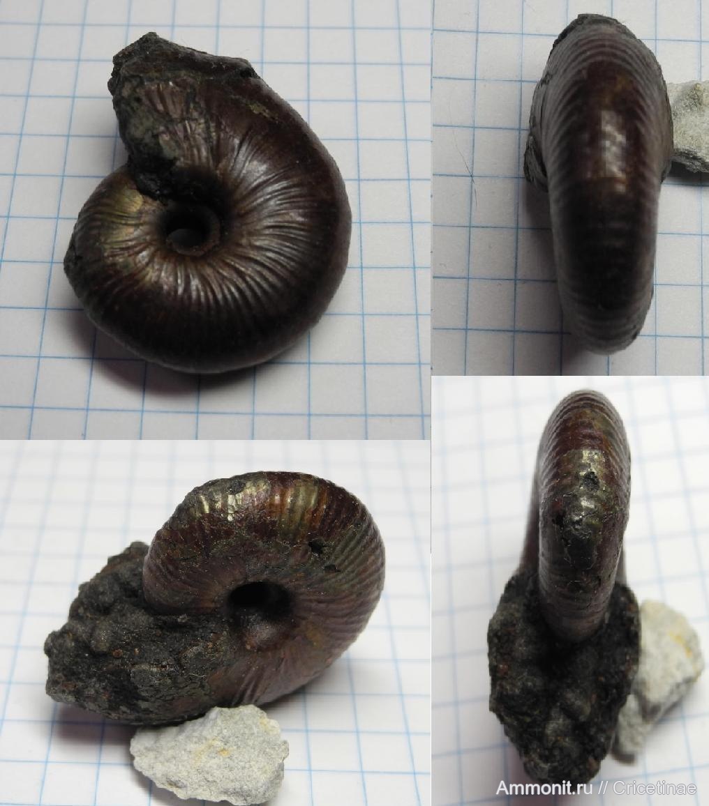 Аммонит около 3 см. Похоже что аммонит имеет след укуса - отверстие от зуба рыбы и бугорок заживления раковины. Образец приобретён у Дмитрия (Dimka).