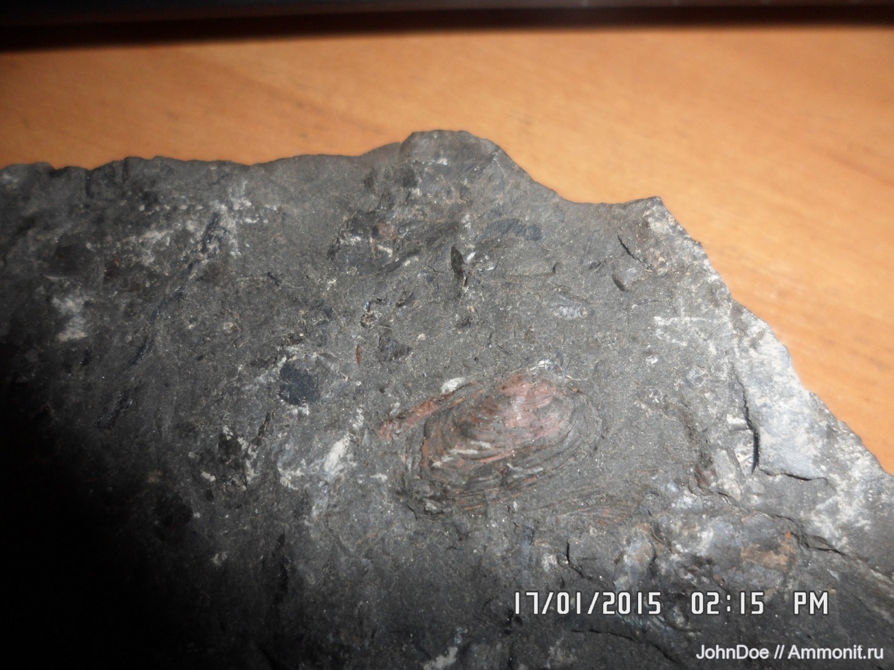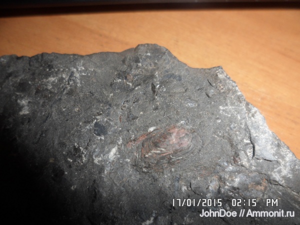 Бывают двустворки, замещенные пиритом. Просто интересное сочетание желтого пирита и черных сланцев. Что-то особенного в пласте с двустворками вряд ли можно ожидать | ||||||