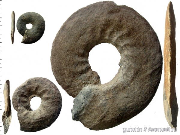 Дмитрий, не запутывайте людей, это типичная сохранность верхневолжских аммонитов в тех местах, а никаких Leioceras там и близко нет. Это действительно давленные краспедитиды, но вот Kachpurites или Craspedites - тут у меня сомнения. У большого образца уж очень сильно пережим у устья выражен, это больше краспедитам свойственно. Лучше спросить MHorn-a, как их при такой сохранность различать. | ||||||