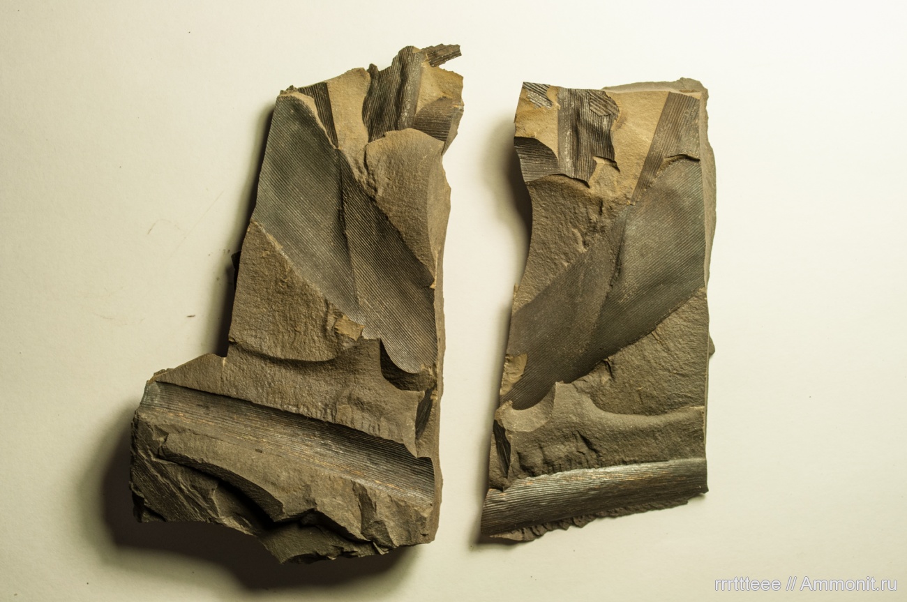 Порода сильно слоится и сыпится в руках. Каждый слой это почти 100% отпечаток растения.
