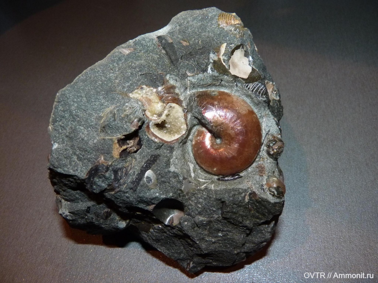 Классный аммонитик! А ниже и левее аммонита, это случайно не углифицированные щепки (чёрного цвета) дерева? | ||||||