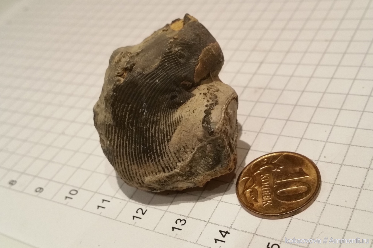 Известняк найден на вершине террикона на скалистой части побережья Северского Донца в поселке Коксовый Белокалитвинского района Ростовской области. Высота камня - 2,5 см, длина - около 3,5 см. Прошу помощи профессионалов в определении возраста окаменелости и ее типа.