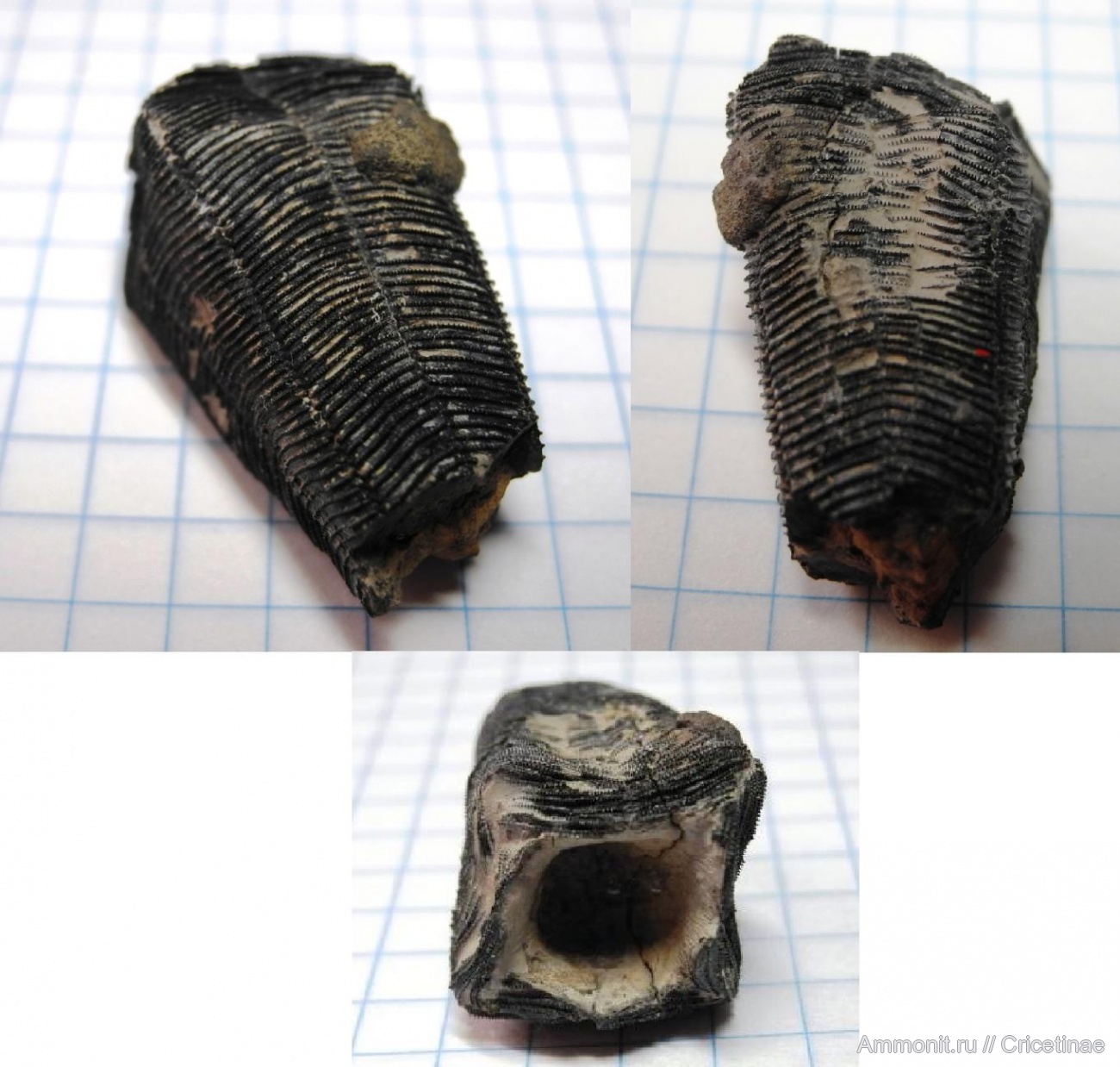 Крупная конулярия чуть менее 4 см, но к сожалению не целая. На конулярии имеется деформация, похожая на прижизненное повреждение.