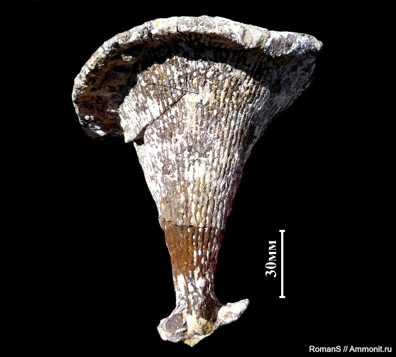 Судя по величине отворота, более молодая губка, по сравнению с Ventriculites cribrosus