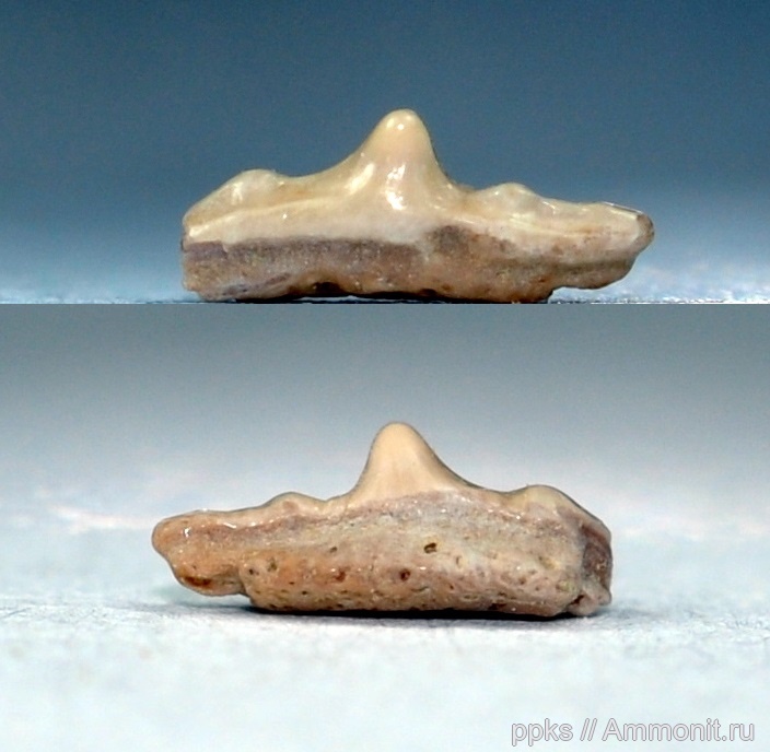 Думаю, что зуб принадлежит Synechodus, один из самых задних. Высота в центральной части - 1,5 мм. Жаль, что надломлен, но все равно интересный.
