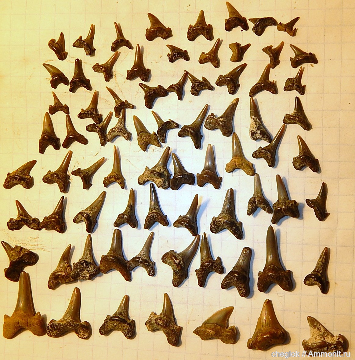 Наконец-то дошли руки до мелких ламноидов из Александровки. Тут примерно половина, вторая половина -- более битые и мельче. Похоже, что в нижних рядах присутствуют археоламны, а в основном это эостриатолямии. Фото показывает количество ламноидов, которых можно добыть за два дня просеивания.