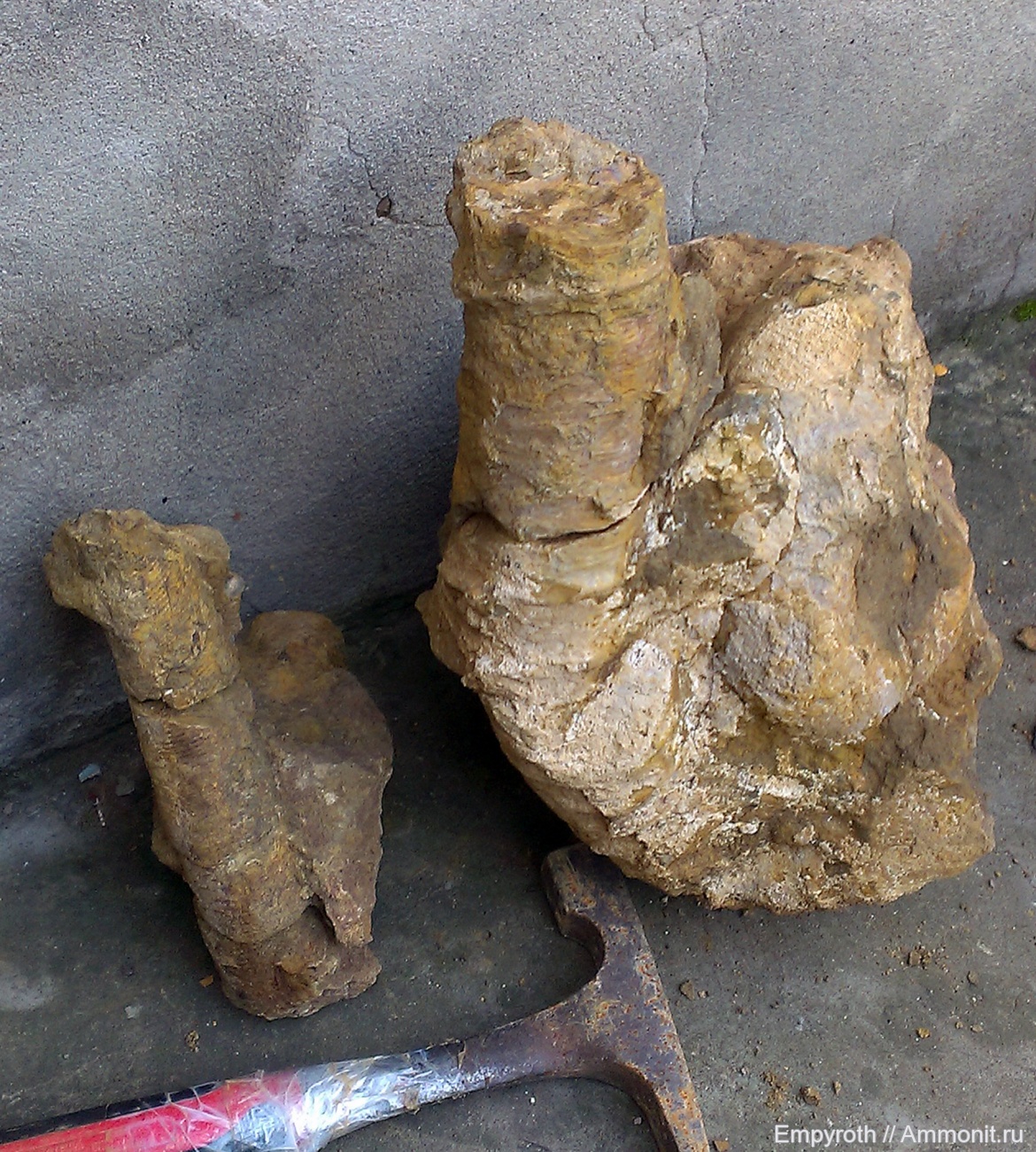 у Hoplocrioceras - "палка" сильно короткая; Acrioceras похож больше, но у него скульптура равномерная, а у этого ближе к жилой камере - ребра, а к первым оборотам - тонкие струйки.. Но может вид какой другой, а род тот... | ||||||