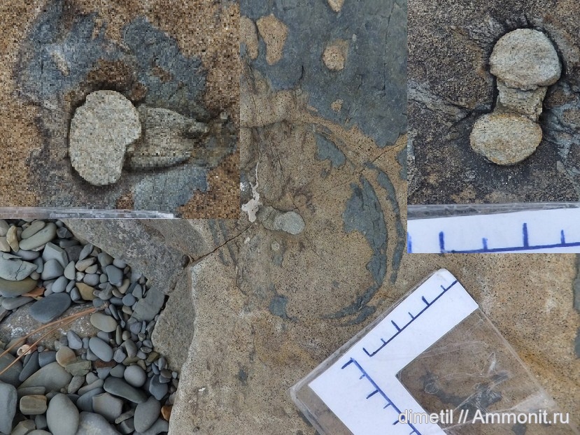 Самого ежа здесь нет и не факт, что такие следы принадлежат морским ежам. Если найдете эти диск в соединении со следом Scolicia, то можно будет считать их следом покоя морского ежа.