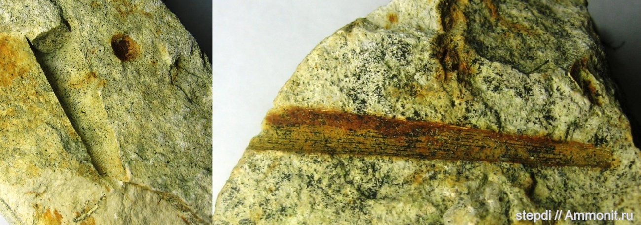 Предположительно отпечатки скафопод. Верхнемеловые отложения урочища Меловые Горы (город Гродно, Беларусь). Имеют продольную штриховку. Длина обоих отпечатков около 30 мм. Левый отпечаток заканчивается фрагментом ядра.